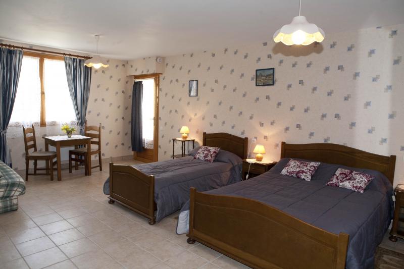 - 1 chambre d'hôtes ainsi que l'auberge aménagées afin de pouvoir recevoir des personnes handicapées : chambre au rez-de-chaussée avec 1 lit 2 places, 1 lit 1 place, s.e, wc, salon.